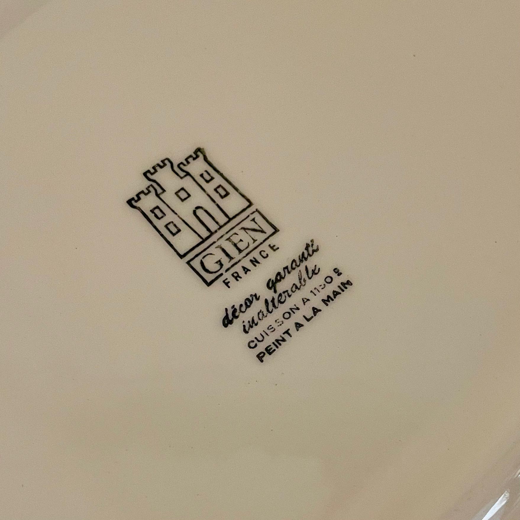 Assiettes vintage illustrées faïencerie de Gien au style bistrot. Une vaisselle rétro pleine de charme pour une cuisine ou une table vintage.